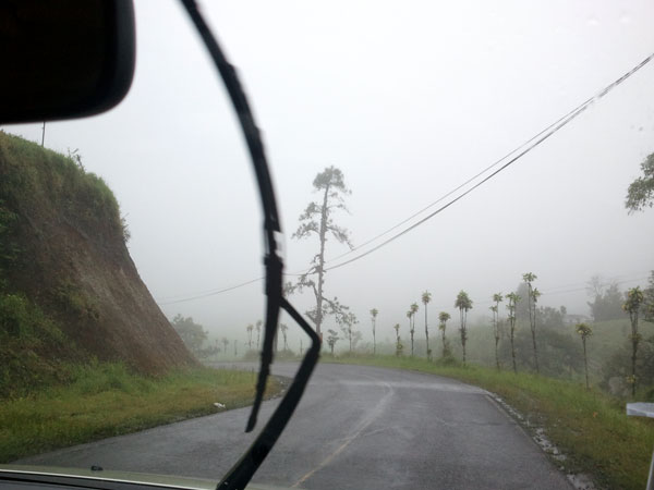 By the time we had turned off of the main highway onto the sineous, winding road that twisted its way through the steep hillsides toward Arenal our fears had been realized and the BeGo was being pounded with rain as we struggled to see the next curve 100 feet ahead: